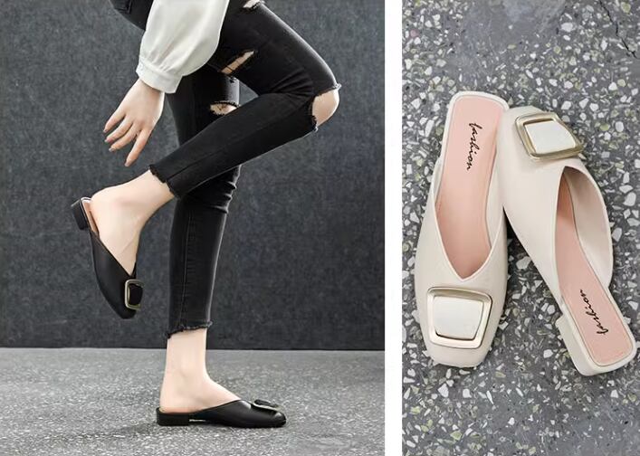 カジュアルハーフスリッパ スタイリッシュデザイン オフィスカジュアル レディース パンプス スリッパ フラットシューズ ぺたんこシューズ 太ヒール ローヒール ぺたんこ スクエアトゥ バックル 美脚 脚長 かわいい 大人可愛い きれいめ シンプル カジュアル 上品 おしゃれ エレガント キュート ガーリー クール モード セクシー モダン 主役級 存在感 こなれ感 華やか シック クラシック スタイリッシュ 春 夏 秋 冬 オールシーズン 無地 オフィス ビジネス OL 通勤 デート お出かけ 旅行 海外