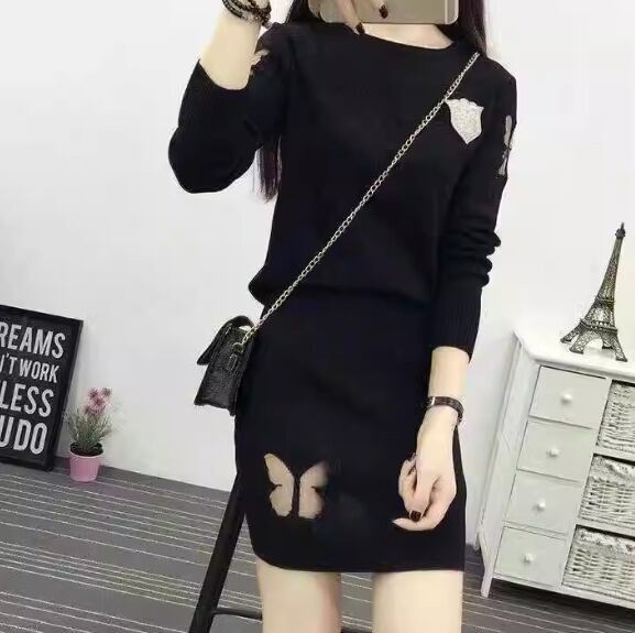 レディース スカート セーター ツーピースセット ニットスカート 長袖 ラウンドネック スリム 細身 フェミニン レース 刺繍 透かし刺繍 蝶 厚手 ニット 大人可愛い おしゃれ ガーリー ラブリー キュート ベーシック ロマンティック ナチュラル 無地 秋 冬 ママ オフィス ビジネス OL 通勤 デート お出かけ レストラン ホテル ショッピング コンサート 合コン カフェ 体型カバー 美脚 脚長 普段使い 着回し モテ S M L XL 2XL 3XL 4XL 黒 ブラック グレー カーキ ワインレ