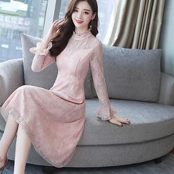 レースワンピース パーティドレス レディース ワンピース 膝下 ミモレ 長袖 首元フリル ウエスト切り替え フレア レース かわいい 大人可愛い きれいめ 上品 おしゃれ ガーリー エレガント モダン ラグジュアリー クラシカル ロマンティック 花柄 フラワー 春 夏 秋 冬 オールシーズン 結婚式 二次会 披露宴 ロングシーズン シーズンレス ママ 20代 30代 パーティー ホテル 合コン コンパ 韓国 オルチャン コーデ 美脚 脚長 モテ 清楚 トレンド 流行 インスタ映え S M L XL 2XL