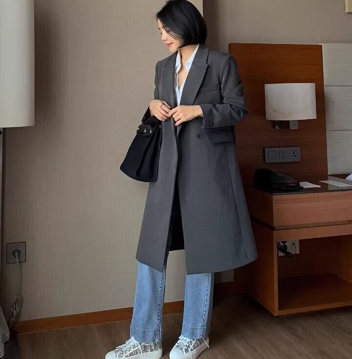 アウター コート ジャケット スーツ ライトアウター テーラードジャケット ロングコート ロング 長袖 襟付き ジャケットコート ストレート Iライン バックスリット ポケット 前開き フロントボタン 袖口ボタン きれいめ シンプル 大人 上品 おしゃれ かっこいい 大人女子 こなれ感 クール モード系 フォーマル 無地 万能 ベーシック 大人カジュアル 秋 冬 レディース 合わせやすい 縦ライン デイリー 着回し 普段使い 体型カバー 定番 王道 フリーサイズ 黒 ブラック灰色 グレー