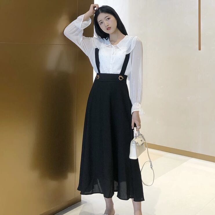 ツーピース セットアップ レディース ワンピース シャツ ブラウス ロング 5分袖 長袖 パフスリーブ フレアスリーブ 襟付き スタンドカラー Aライン シフォン 透け感 ボタン バイカラー 配色 薄手 柔らか 大人可愛い シンプル カジュアル おしゃれ レトロ こなれ感 ラフ ガーリー モダン とろみ感 ラグジュアリー カレッジ風 学生風 フェミニン お茶目 控えめ 無地 春 夏 お出かけ 旅行 休日 ショッピング 重ね着 楽ちん 体型カバー 普段使い 着回し レイヤード 清楚 ゆる ホワイト ブラック