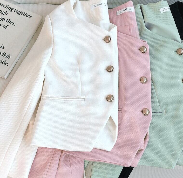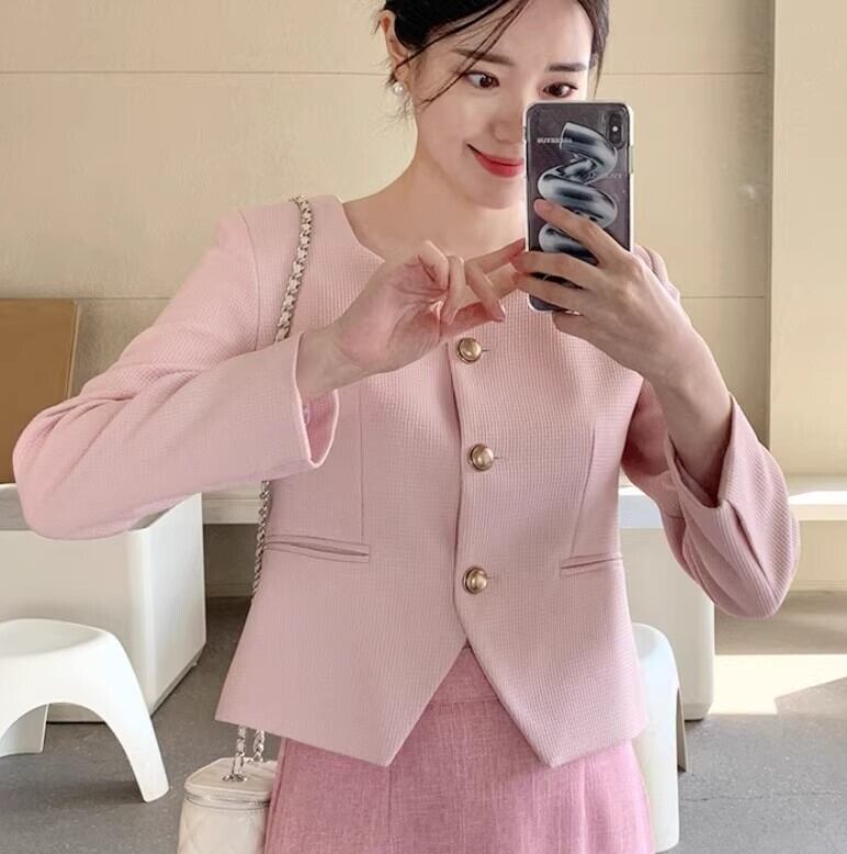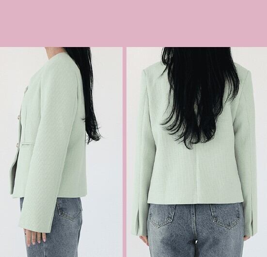 トップス ジャケット ライトアウター ツイードジャケット ノーカラージャケット 上着 羽織 セミクロップド 長袖 スクエアネック ノーカラー ポケット 前開き ゴールドボタン ポリエステル かわいい 大人可愛い きれいめ シンプル 上品 スイート ガーリー フォーマル フェミニン 無地 クラシカル 高級感 万能 大人カジュアル レディース デート お呼ばれ パーティー デイリー 軽い 着回し モテ 脚長 小顔 スタイルアップ M L フィット感 白 アイボリー ピンク ミントグリーン