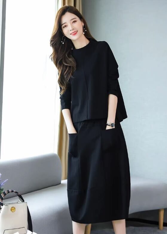 レディース スカート トップス セットアップ ツーピースセット コクーンスカート 膝下 長袖 ハイネック タイト ウエストリボン 厚手 カジュアル おしゃれ こなれ感 クール モード系 エレガント 都会的 星ワンポイント 無地 オールシーズン 会議 ママ マタニティ オフィス ビジネス デート お出かけ レストラン 女子会 休日 発表会 カフェ 婚活 体型カバー 美脚 脚長 普段使い 着回し M L XL 2XL 3XL 4XL 5XL 大きいサイズ ビッグ ゆったり ゆる 黒 ブラック グレー