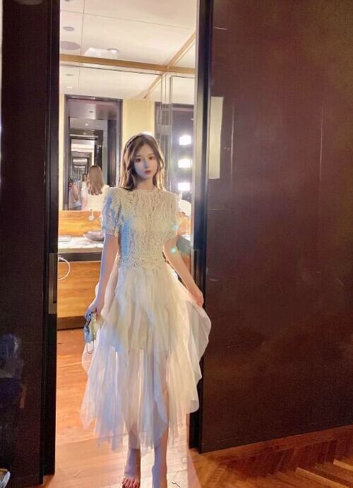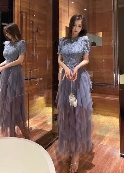 ドレス ワンピース パーティー 二次会 披露宴 演奏会 発表会 ステージ 舞台 キャバ ダンス 衣装 コスプレ コスチューム 演劇 ラウンジ クラブ ロング 半袖 ラウンドネック フレア Aライン レース 刺繍 チュール ウエストマーク 切り替えデザイン 可愛い きれいめ シンプル カジュアル 大人可愛い おしゃれ キュート ガーリー エレガント 主役級 存在感 抜け感 ゴージャス 華やか 無地 イベント ホテル レストラン 韓国 体型カバー 脚長 高見え 格上げ 光沢感 シーズンレス 白 水色