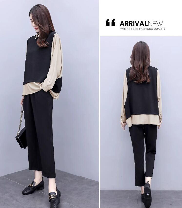 ツーピース セットアップ レディース パンツ シャツ プルオーバー ストレートパンツ ロングパンツ 9分丈 クロップド丈 長袖 カフスボタン 襟付き ワイド Iライン ウエストゴム バイカラー 配色 薄手 柔らか きれいめ シンプル カジュアル 上品 おしゃれ レトロ こなれ感 ラフ ルーズ 存在感 抜け感 都会的 ラグジュアリー ナチュラル 大人女子 控えめ 無地 春 秋 オフィス ビジネス お出かけ 旅行 ショッピング カフェ 楽ちん 普段使い 着回し ゆったり ブラック ベージュ 大人カラー