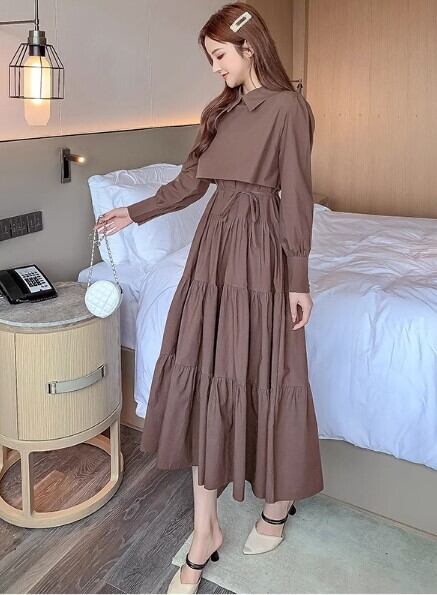 レディース ワンピース ロング 長袖 襟付き 角襟 フレア セミフレア 切り替え ハイウエスト かわいい 大人可愛い きれいめ シンプル カジュアル おしゃれ こなれ感 ガーリー 個性的 主役級 存在感 抜け感 キュート 都会的 無地 春 秋 誕生日 OL 学生 学校 通学 デート お出かけ お泊まり 旅行 レストラン 公園 女子会 休日 ガーデン ショッピング 発表会 コンサート ライブ お花見 合コン コンパ カフェ 婚活 お揃い 韓国 オルチャン コーデ 楽ちん 脚長 普段使い 着回し