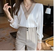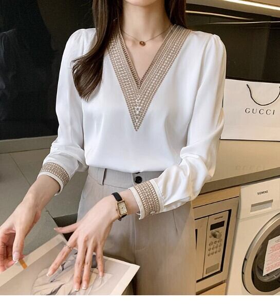 上品さと洗練された魅力が詰まった、レディースのシャツブラウス。この長袖Vネックのトップスは、かわいさと大人可愛さを兼ね備えたデザインです。シンプルながらも上品さとおしゃれさが漂い、こなれ感とメンズライクなクールなスタイルを叶えます。モード系の要素やエレガントな雰囲気が主役級の存在感を引き立てます。フォーマルな場にもぴったりで、オフィスやビジネスシーン、OLの通勤スタイルにもおすすめです。