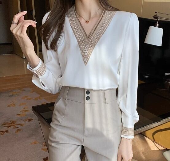 レディース トップス シャツ ブラウス 長袖 Vネック かわいい 大人可愛い きれいめ シンプル 上品 おしゃれ かっこいい こなれ感 クール モード系 エレガント モダン 主役級 存在感 フォーマル かっちり 都会的 無地 春 秋 誕生日 オフィス ビジネス OL 通勤 学生 学校 通学 デート お出かけ お泊まり アウトドア 旅行 レストラン 女子会 休日 ホテル ガーデン ショッピング 発表会 コンサート ライブ お花見 合コン コンパ カフェ 婚活 韓国 オルチャン 普段使い 着回し