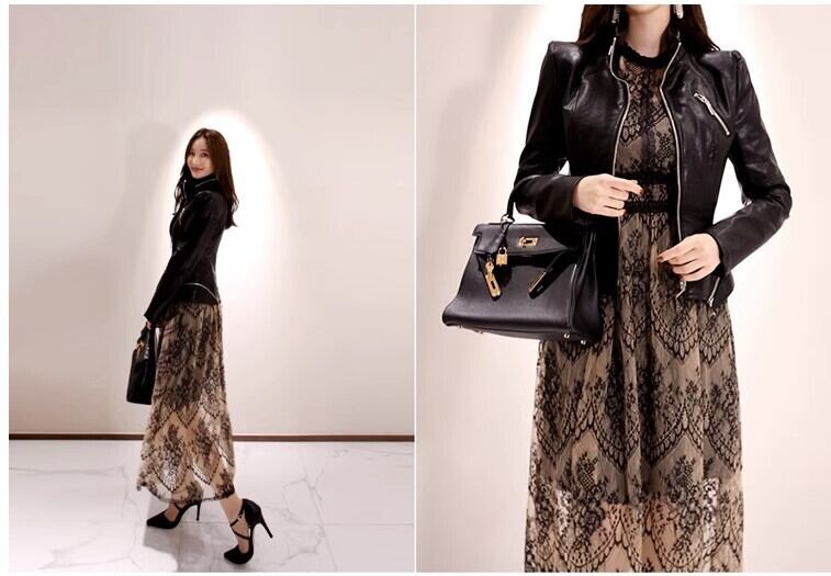 華やかさと上品さを兼ね備えた黒のドレス。襟なしのデザインで肩や首元を美しく見せ、長袖とフレアのAラインシルエットが女性らしい魅力を引き立てます。レースや刺繍のディテールが可愛さとエレガントさを加え、透け感のあるシースルー素材がセクシーさを演出します。主役級の存在感と抜け感で、パーティーや二次会、披露宴、演奏会、発表会、ステージや舞台などの特別な場面で輝きます。