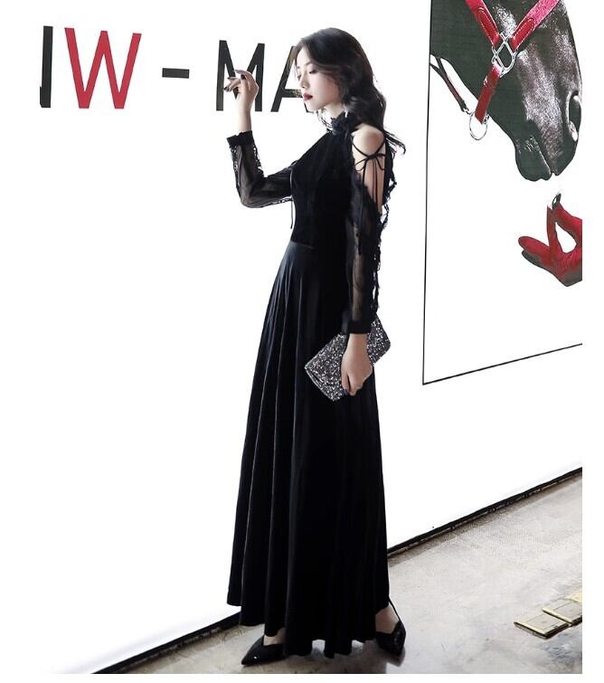 ドレス パーティー 結婚式 二次会 披露宴 演奏会 発表会 ステージ 舞台 フォーマル キャバ ダンス 衣装 コスプレ コスチューム 謝恩会 演劇 ラウンジ クラブ ロング 長袖 フレア Aライン レース リボン ベロア 可愛い きれいめ カジュアル 大人可愛い 上品 おしゃれ かっこいい クール モード エレガント モダン 主役級 存在感 とろみ感 ゴージャス セクシー 華やか 無地 イベント 旅行 ホテル レストラン 韓国 体型カバー 美脚 脚長 高見え 格上げ 女子会 黒