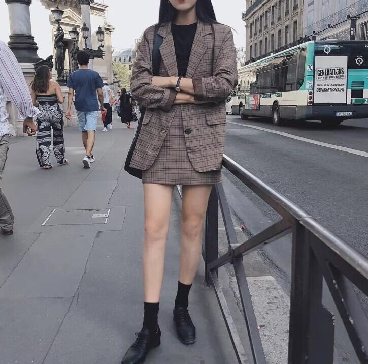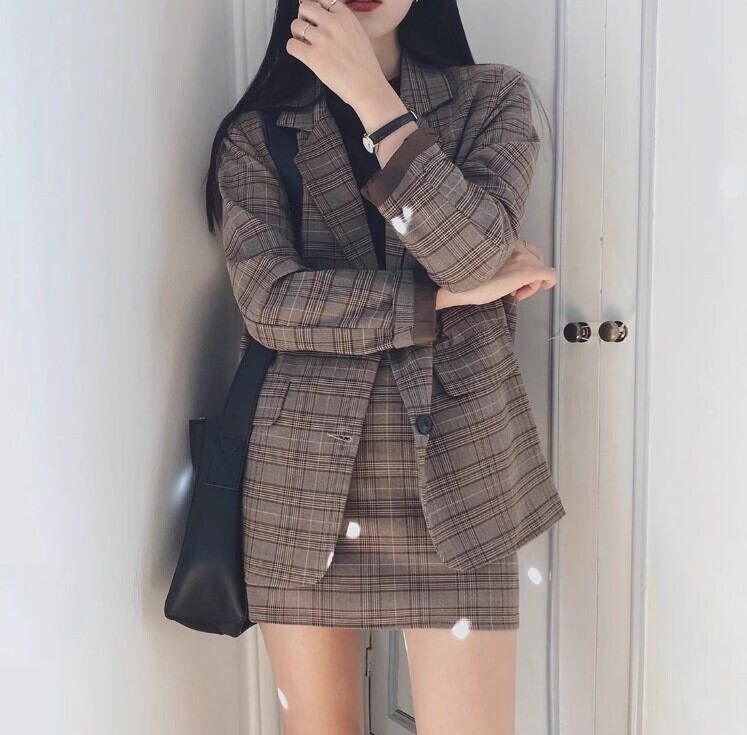 レディース スカート ジャケット セットアップ ミニ ショート 長袖 襟付き 角襟 前開き かわいい 大人可愛い きれいめ シンプル カジュアル おしゃれ かっこいい こなれ感 クール モード系 モダン 主役級 存在感 抜け感 チェック 格子柄 秋 冬 OL 学生 学校 通学 お出かけ お泊まり 旅行 レストラン 女子会 休日 ショッピング 発表会 コンサート ライブ コスプレ 合コン コンパ カフェ 韓国 オルチャン コーデ 楽ちん 体型カバー 脚長 普段使い 着回し モテ インスタ映え