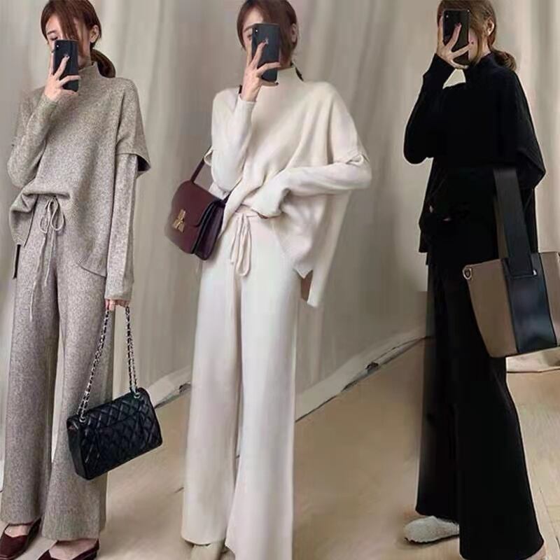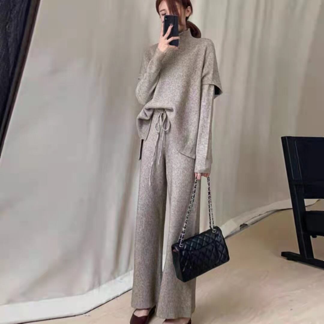 レディース パンツ セーター ベスト スリーピースセット ワイドパンツ 長袖 ラウンドネック ハイネック ワイド フレア フェミニン ウエストリボン サイドスリット 厚手 上品 おしゃれ ラフ ルーズ モード系 エレガント モダン 都会的 ラグジュアリー 無地 秋 冬 ママ マタニティ デート お出かけ イベント 旅行 レストラン 女子会 バカンス 発表会 コンサート コンパ カフェ モノトーン 重ね着 楽ちん 普段使い 着回し 清楚 S M L XL ゆったり ゆる 黒 ブラック グレー ベージュ