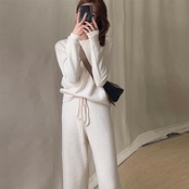 こちらのレディーススリーピースセットは、ワイドパンツ、セーター、ベストの3点セットです。