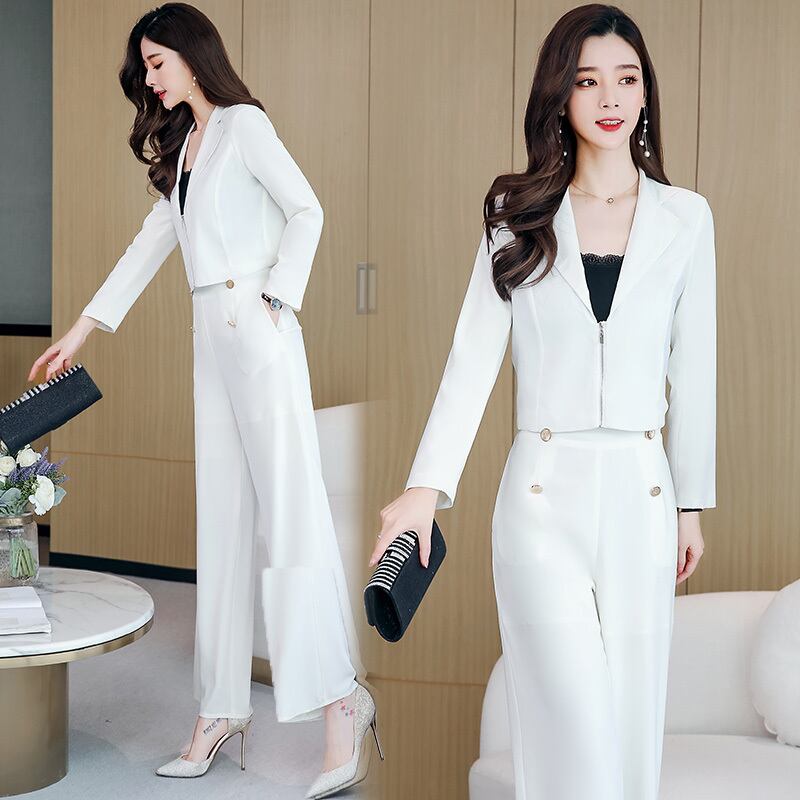 こちらのレディースツーピースセットは、テーラードジャケットとワイドパンツのセットです。