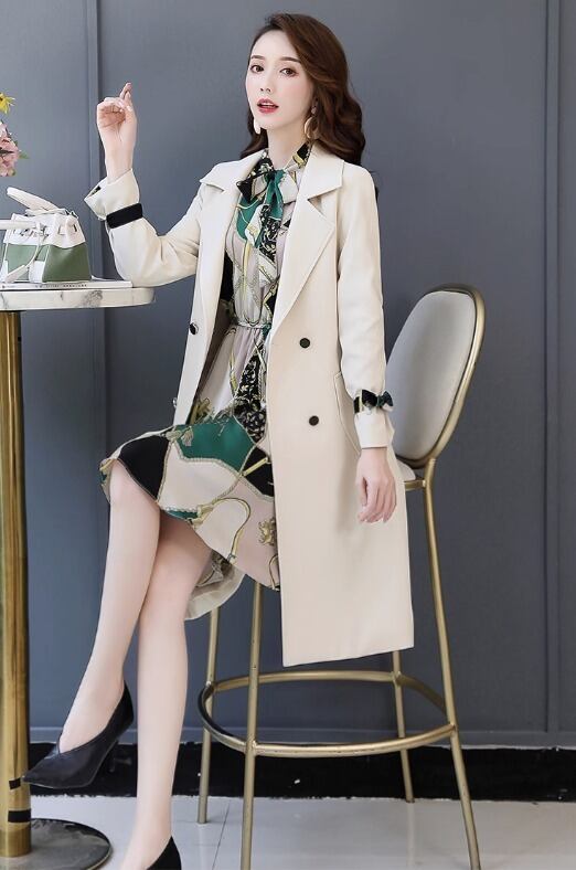 花柄シャツワンピースにトレンチコートを合わせたツーピースセットです☆