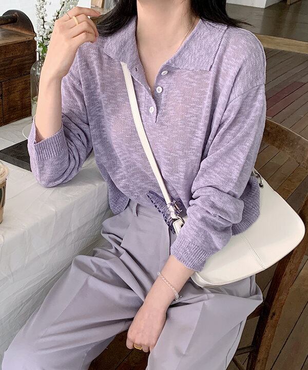 レディース トップス カットソー 長袖 襟付き 角襟 ストリート 薄手 シアー かわいい 大人可愛い きれいめ シンプル カジュアル 上品 こなれ感 ラフ ガーリー 無地 OL 通勤 学生 通学 部活 デート お出かけ お泊まり キャンプ 公園 女子会 休日 重ね着 お揃い 韓国 楽ちん 暖かい 体型カバー 普段使い 着回し フリーサイズ オフホワイト ネイビー パープル