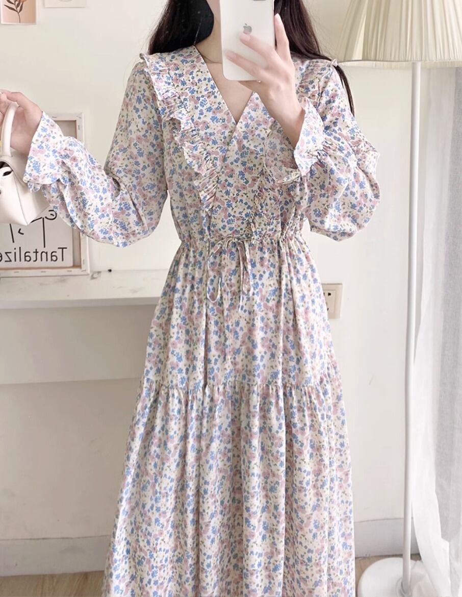 ワンピース デート フレアワンピース ミモレ ミモレ丈 袖あり 長袖 ボリューム袖 フレア Aライン 切り替えデザイン ウエストマーク 切り替えデザイン ハイウエスト かわいい 大人可愛い シンプル カジュアル おしゃれ お洒落 かっこいい 大人可愛い 大人女子 こなれ感 存在感 抜け感 柄 花柄 小花柄 フラワー 春 秋 冬 誕生日 入学式 入園式 卒業式 卒園式 謝恩会 二次会 冠婚葬祭 ハロウィン 10代 20代 30代 レディース ママ OL デート お出かけ 女子会 旅行 ホテル ガーデン