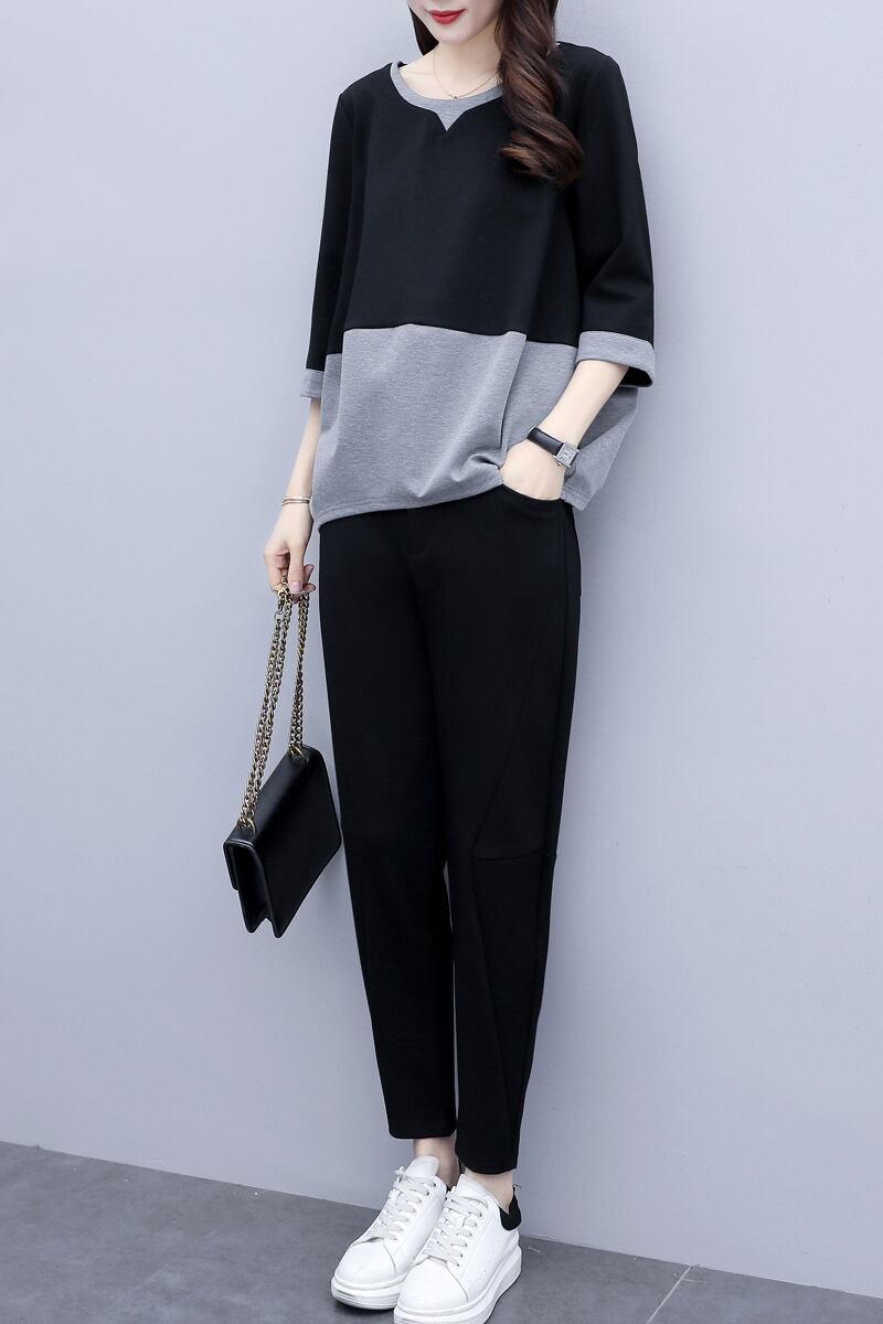 長袖ラウンドネックのトップスとジョガーパンツの2点セットです♪