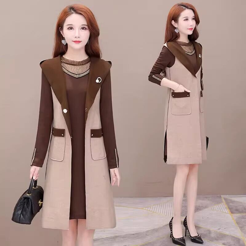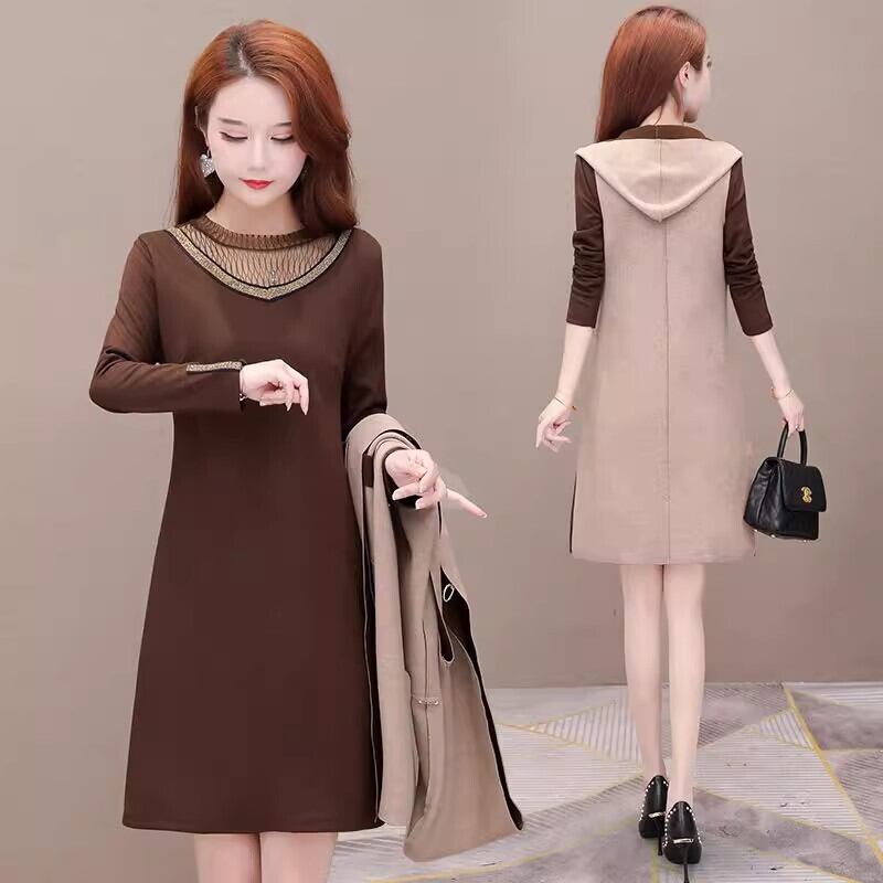 ツーピース レディース ジャケット ワンピース ベスト 羽織 膝上 ノースリーブ 長袖 ラウンドネック 襟なし ノーカラー フード ストレート サイドスリット ポケット 透け感 コンサバ バイカラー 配色 異素材ミックス 大人可愛い きれいめ シンプル カジュアル 上品 おしゃれ レトロ こなれ感 ラフ モダン 存在感 フォーマル 都会的 ラグジュアリー ロマンティック ハイエンド ドレッシー フェミニン 控えめ 無地 秋 オフィス ビジネス OL 通勤 韓国 普段使い 着回し 清楚 ブラウン ベージュ