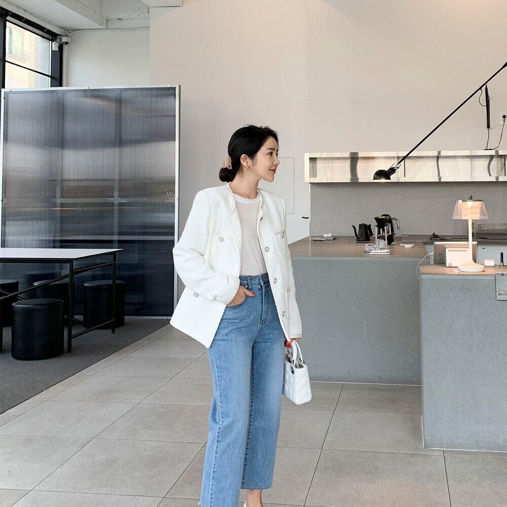 レディース ジャケット 上着 ノーカラージャケット 長袖 ストレート ポケット ツイード ボタン かわいい 大人可愛い きれいめ シンプル カジュアル 上品 おしゃれ かっこいい ガーリー エレガント 主役級 ラブリー キュート 都会的 ナチュラル 無地 春 秋 謝恩会 ママ OL 通勤 学生 通学 デート お出かけ パーティー イベント 旅行 女子会 ショッピング カフェ 韓国 コーデ 楽ちん 普段使い 着回し モテ トレンド インスタ映え ゆったり フリーサイズ ホワイト ベージュ ピンク ブルー