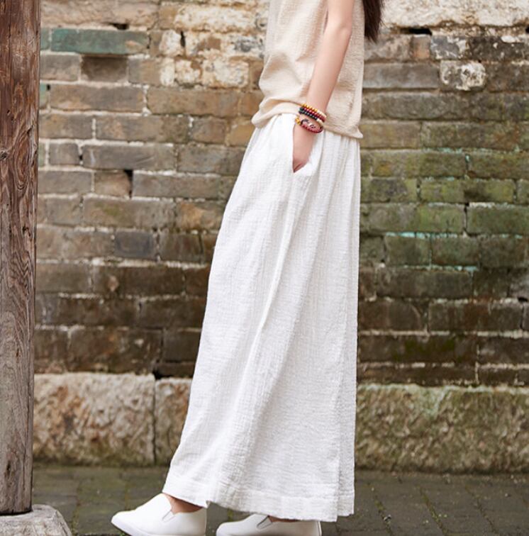 スカートみたいなフレア感がキュートでフェミニンなマキシ丈ガウチョパンツ。春夏のオシャレにピッタリなコットンリネンは涼しげで爽やか。スパーワイドなので体型カバーはもちろんの事、ストンとした落ち感もあるので細見え効果も♡ウエストゴムなのも嬉しいポイント♪使いやすい6カラーをご用意しました☆