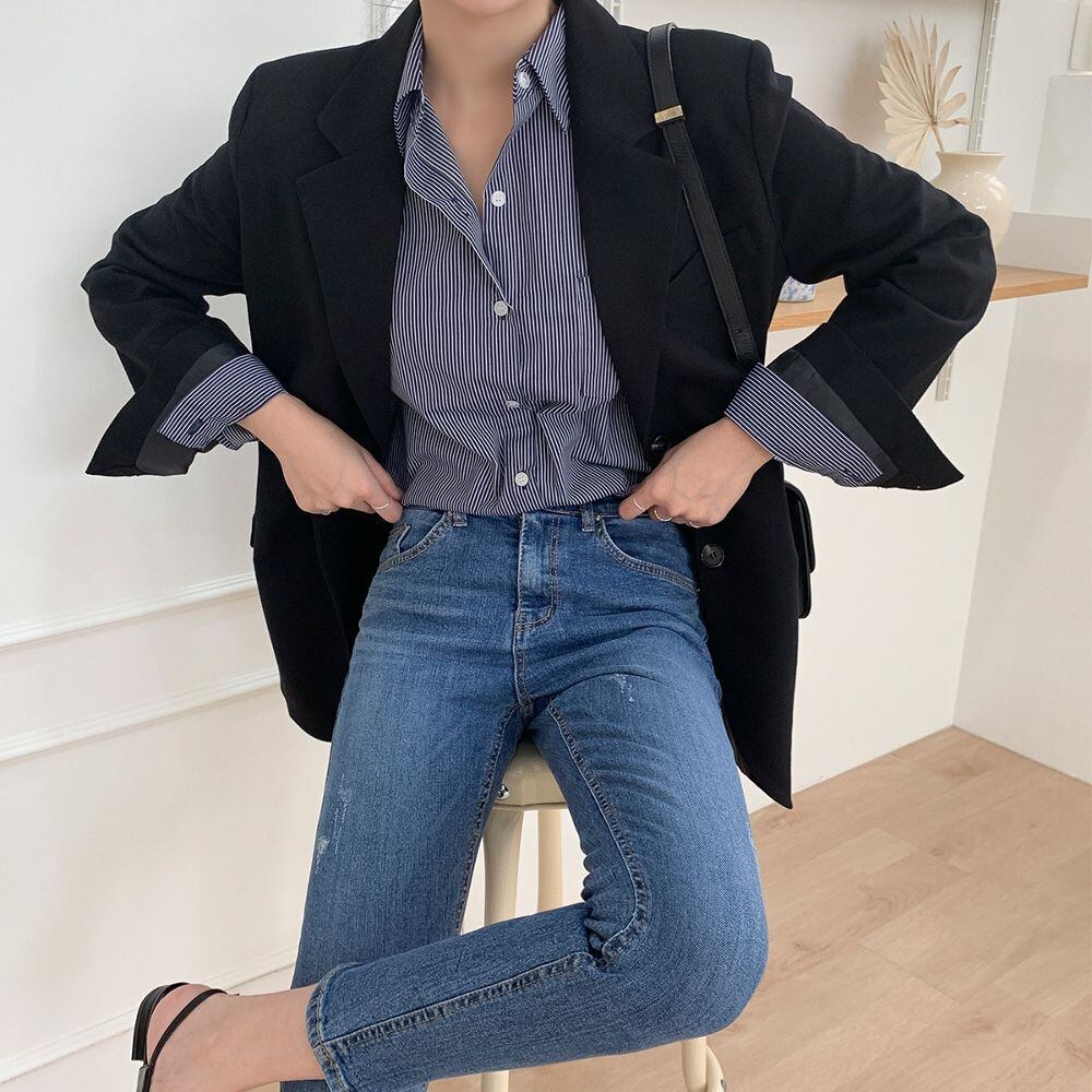 おしゃれなレディーステーラードジャケット。シンプルなデザインながら、さりげない華やかさをプラス。カジュアルにもきれいめにも合わせやすいアイテムです。