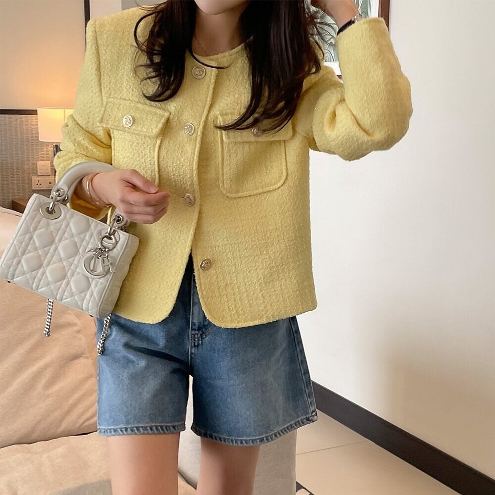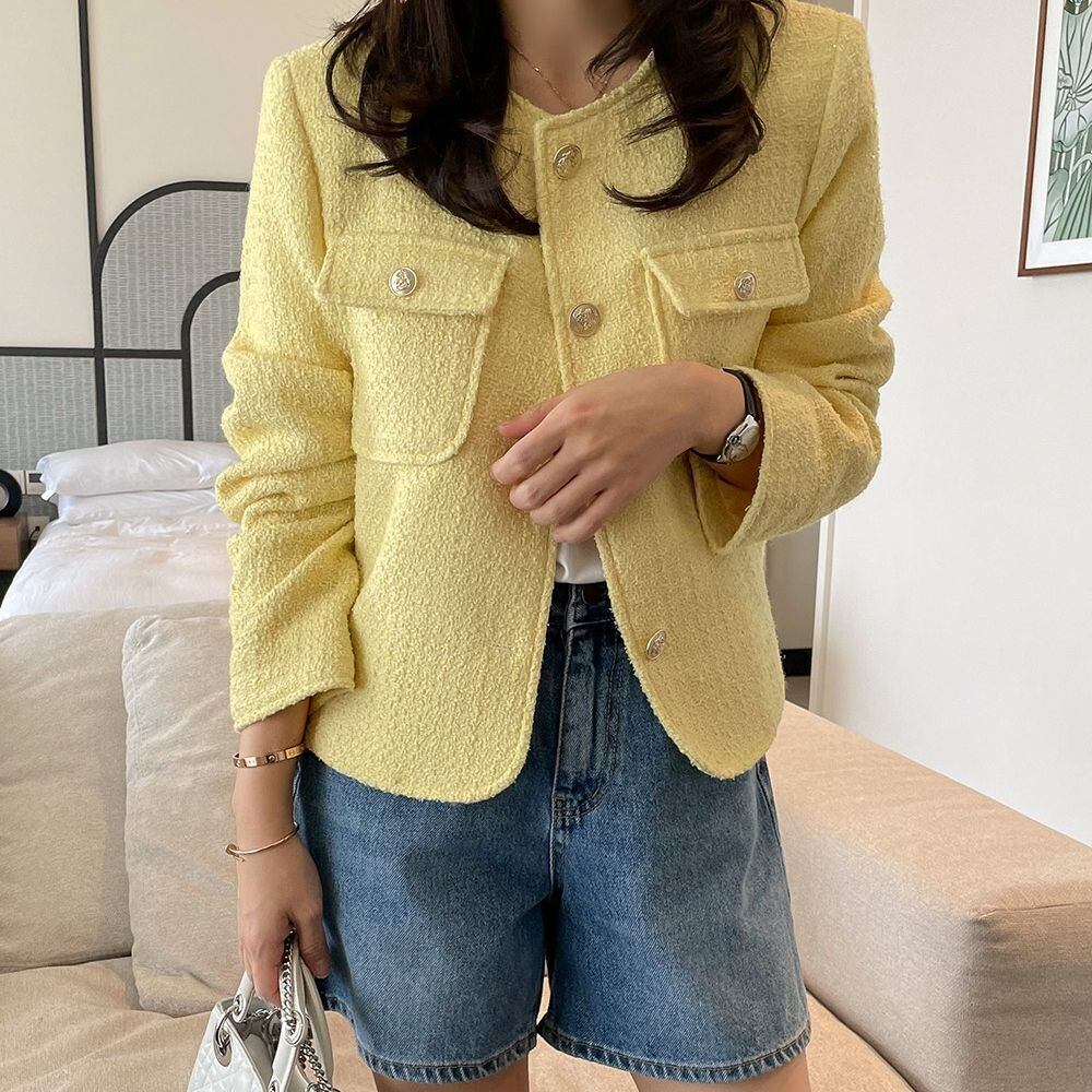 レディース ジャケット 上着 ノーカラーコート 長袖 ポケット ツイード ボタン 薄手 かわいい 大人可愛い きれいめ シンプル カジュアル 上品 おしゃれ ガーリー エレガント 主役級 ラブリー キュート 都会的 ナチュラル 無地 春 謝恩会 ママ OL 通勤 学生 通学 デート お出かけ パーティー イベント 旅行 レストラン 女子会 ホテル ショッピング カフェ 韓国 コーデ 楽ちん 普段使い 着回し モテ 清楚 トレンド 流行 インスタ映え フリーサイズ ホワイト イエロー ブルー パステル