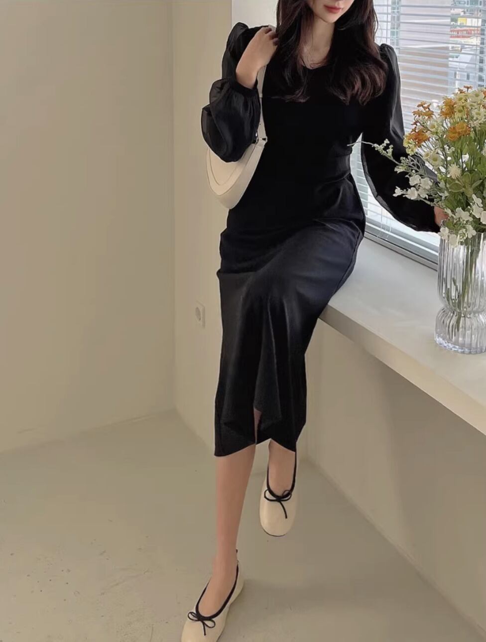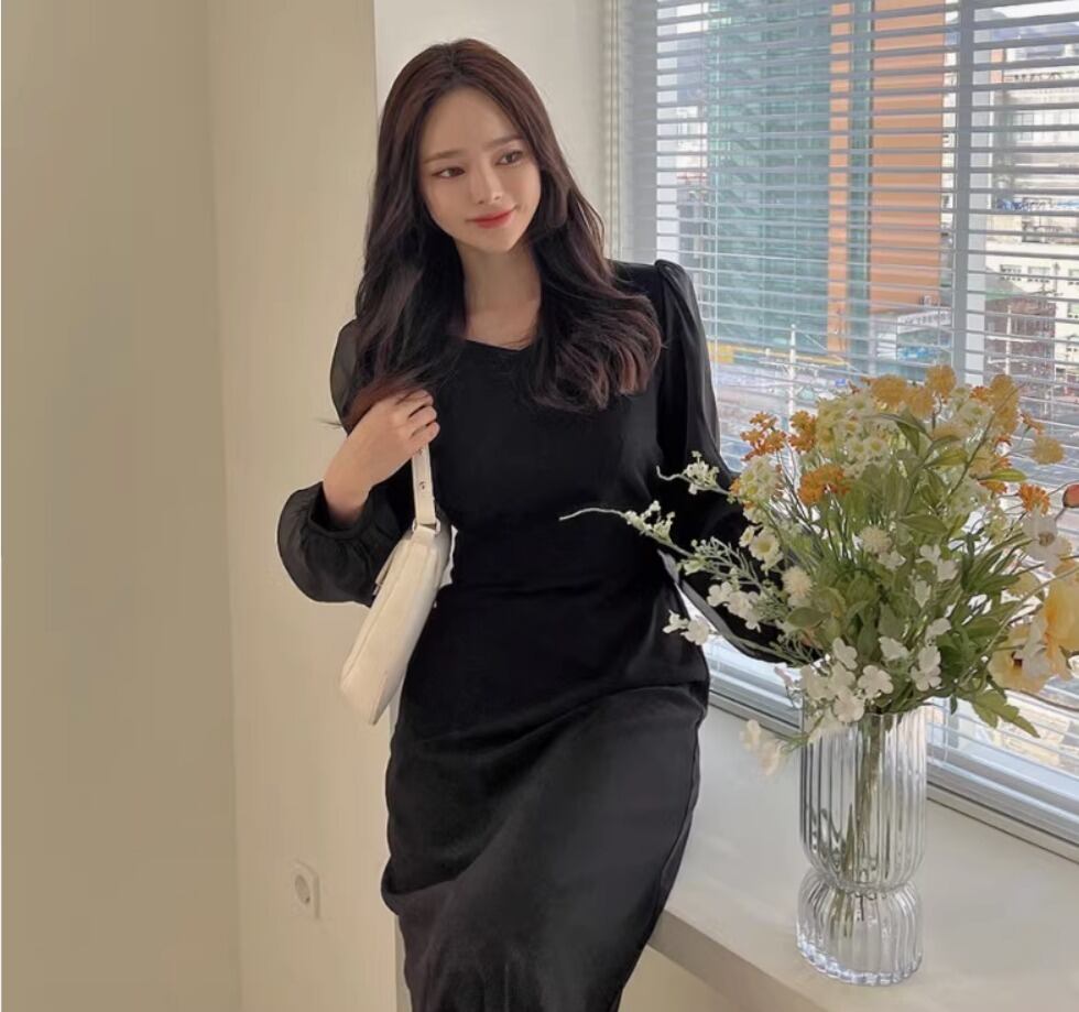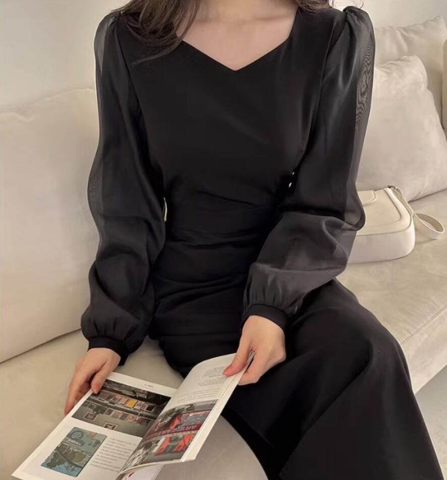 ワンピース デート ワンピドレス ミモレ丈 ロング ロング丈 袖あり 長袖 ボリューム袖 フレア ハイウエスト かわいい 大人可愛い シンプル カジュアル おしゃれ お洒落 かっこいい 大人可愛い 大人女子 こなれ感 存在感 抜け感 無地 春 秋 冬 誕生日 入学式 入園式 謝恩会 二次会 ハロウィン クリスマス バレンタイン 10代 20代 30代 レディース ママ OL デート お出かけ 女子会 旅行 ホテル ガーデン レストラン ショッピング ファッション コーデ スタイル 黒