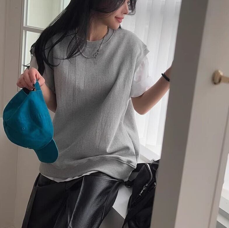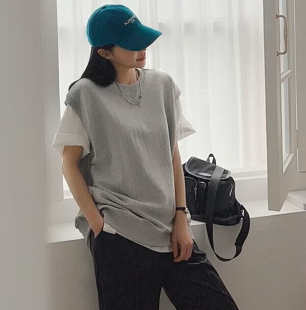トップス ベスト プルオーバー トレーナー スウェット タンクトップ 袖なし ノースリーブ ラウンドネック 伸縮性 シンプル カジュアル おしゃれ こなれ感 ラフ ボーイッシュ スポーティー ルーズ クール 抜け感 無地 万能 ベーシック オールシーズン レディース 合わせやすい お出かけ 公園 ショッピング デイリー 着回し 普段使い 重ね着 楽ちん 体型カバー 定番 王道 リラックス レイヤード フリーサイズ ゆったり ゆる ワンサイズ 黒 ブラック 灰色 グレー 紺 ネイビー