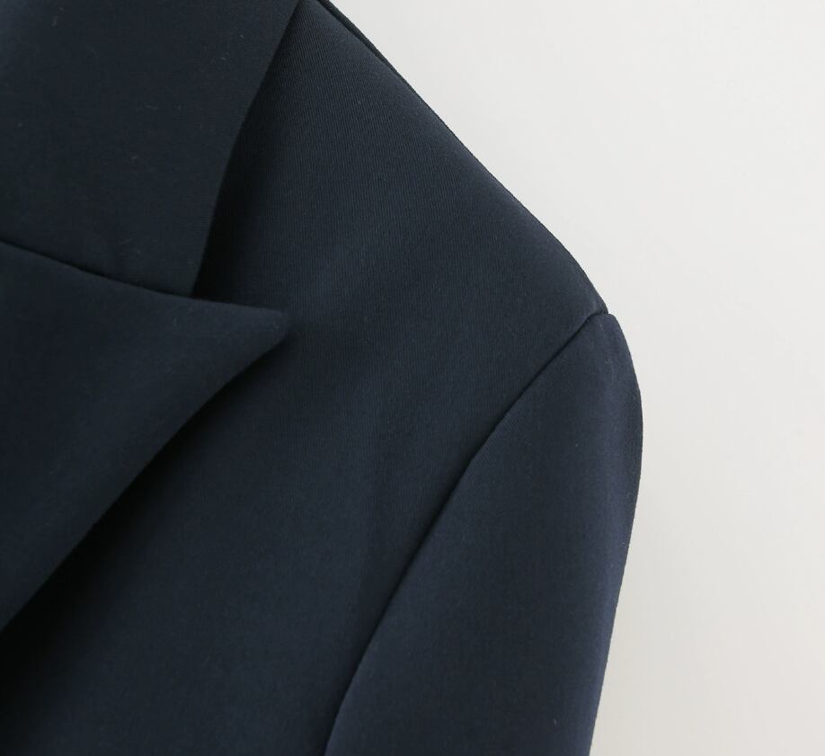 シンプルで上品なデザインながら、ボタンデザインが個性的で存在感のある一枚。