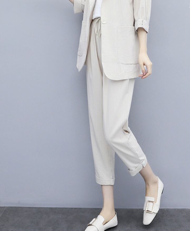 2点セット レディース ジャケット パンツ ボトムス セットアップ 羽織 8分丈 7分袖 Vネック 襟付き 角襟 ストレート ポケット ハイウエスト 前開き ボタン 薄手 かわいい 大人可愛い きれいめ シンプル カジュアル おしゃれ こなれ感 ラフ 個性的 主役級 存在感 とろみ感 抜け感 無地 春 秋 誕生日 発表会 授業参観 大会 会議 MTG ミーティング プレゼン ママ マタニティ オフィス ビジネス OL 通勤 学生 学校 通学 デート お出かけ お泊まり 旅行 海 レストラン 公園 女子会