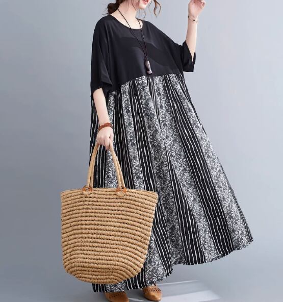 レディース スカート ワンピース ロングスカート ロング マキシ 5分袖 ラウンドネック ワイド Aライン 切り替え ドッキング 裾ワイド かわいい 大人可愛い きれいめ シンプル カジュアル おしゃれ エスニック ルーズ 個性的 クール 主役級 存在感 とろみ感 抜け感 誕生日 謝恩会 ママ マタニティ オフィス OL 通勤 学生 デート お出かけ パーティー 旅行 レストラン 女子会 休日 バカンス ホテル ショッピング コンサート コスプレ 合コン コンパ カフェ 婚活 楽ちん 体型カバー モテ