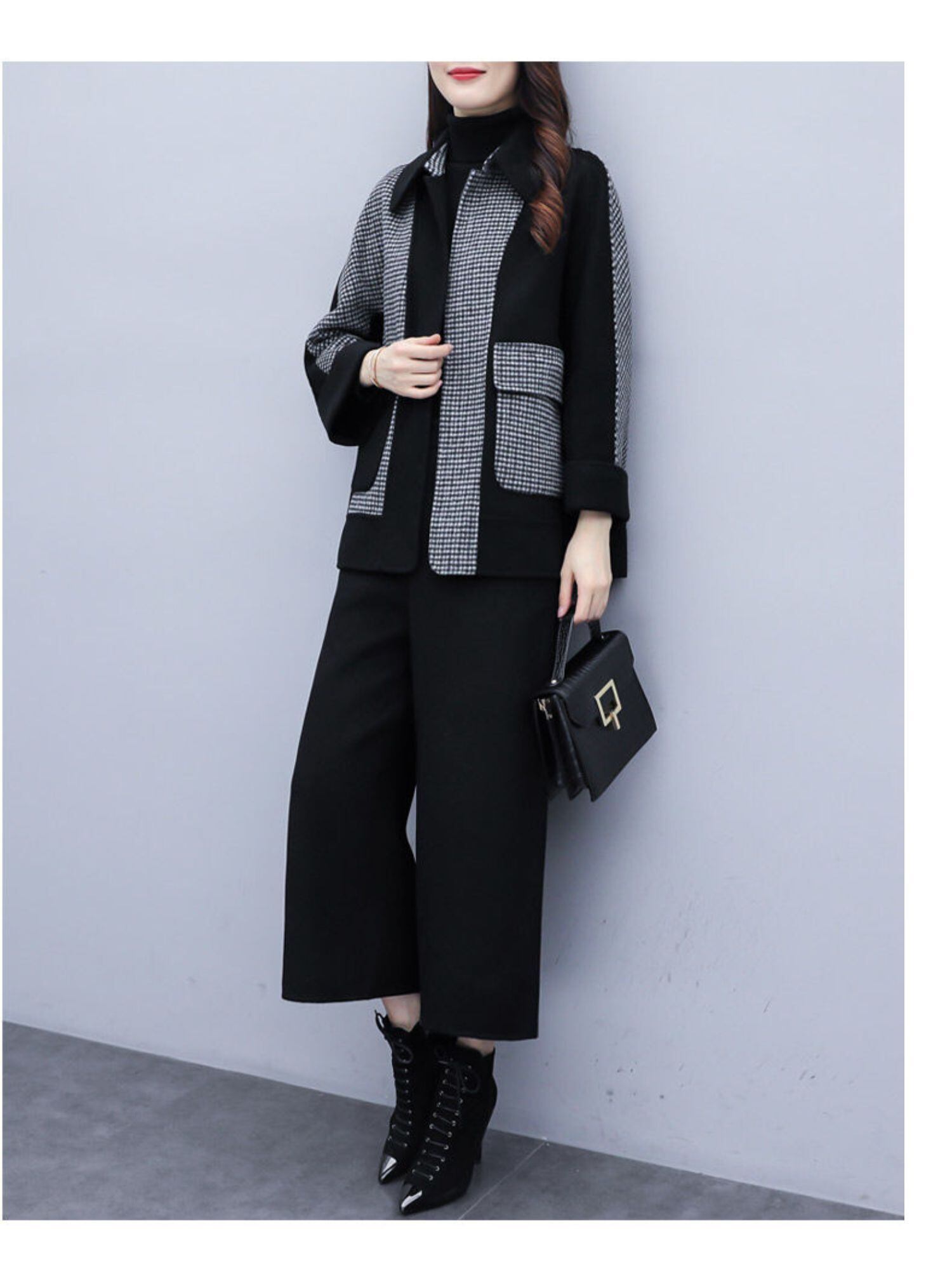 レディース パンツ コート セットアップ ツーピースセット ショートコート テーラードジャケット ガウチョパンツ 長袖 ラウンドネック 襟付き ワイド コンサバ ボタン 厚手 きれいめ シンプル 上品 クール エレガント かっちり 格子柄 オールシーズン 授業参観 ミーティング ママ オフィス ビジネス OL 通勤 デート お出かけ 公園 休日 ガーデン ショッピング お花見 カフェ 楽ちん 暖かい 防寒 体型カバー 普段使い 着回し S M L XL 2XL 3XL ゆったり ゆる 黒 ブラック