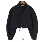 アウター ライトアウター モッズ ミリタリー モッズコート ブルゾン ジャケット ジャンパー 上着 羽織 ショート丈 長袖 ボリューム袖 スタンドカラー ウエスト絞り 裾切りっぱなし ファスナー ポケット ハイウエスト 前開き 袖口ボタン 細見え シンプル カジュアル おしゃれ かっこいい こなれ感 ラフ クール 無地 万能 ベーシック 大人カジュアル 春 秋 冬 レディース 合わせやすい デイリー 着回し 体型カバー 脚長 スタイルアップ フリーサイズ ゆったり 黒 ブラック カーキ