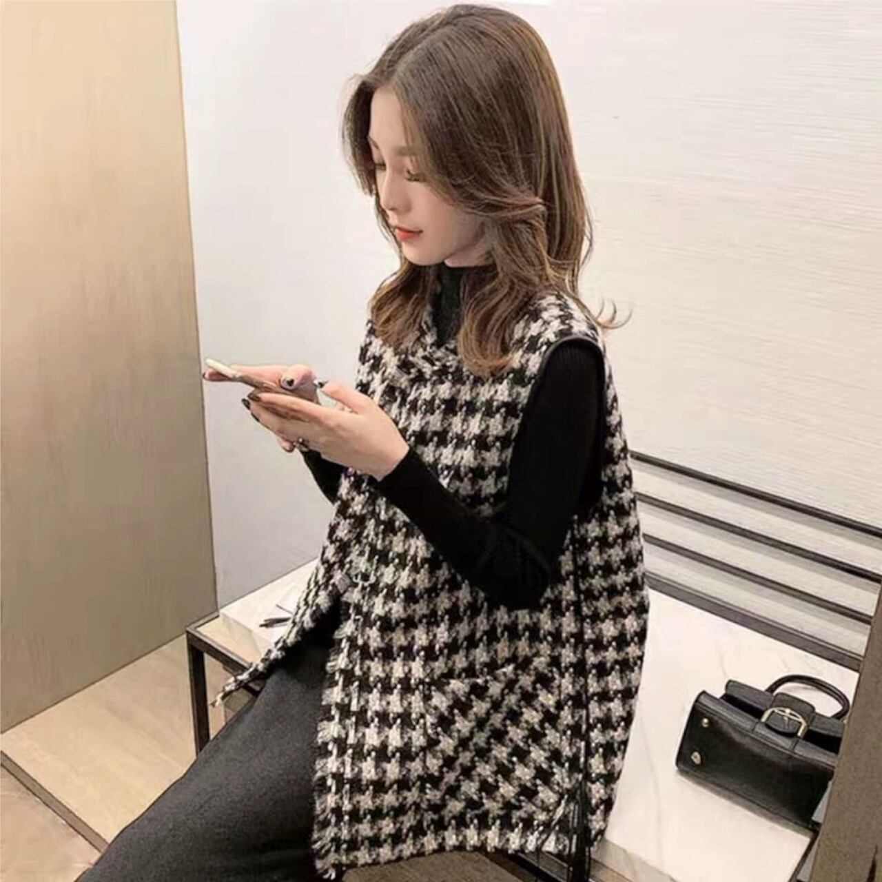 千鳥格子 ベスト ジレ レディース ジャケット 上着 羽織 袖なし フェミニン 前開き 配色 かわいい 大人可愛い きれいめ 上品 おしゃれ かっこいい こなれ感 ラフ ルーズ 個性的 クール エレガント 存在感 キュート 都会的 格子柄 総柄 秋 冬 謝恩会 発表会 授業参観 ママ オフィス OL 通勤 デート お出かけ イベント 女子会 休日 ショッピング 重ね着 韓国 オルチャン コーデ 楽ちん 暖かい 体型カバー 普段使い 着回し レイヤード インスタ映え S M L XL ゆったり 黒 ブラック