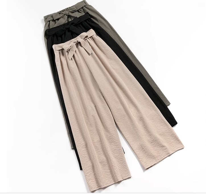 レディース パンツ ボトムス ロングパンツ ワイドパンツ ロング 9分丈 クロップド丈 ワイド セミフレア Aライン フェミニン リボン ベルト ウエストリボン ハイウエスト ウエストゴム リネン 綿 コットン 麻 かわいい 大人可愛い きれいめ シンプル カジュアル 上品 おしゃれ こなれ感 ラフ 存在感 抜け感 ラブリー キュート ナチュラル 涼しげ 無地 春 夏 デート お出かけ 女子会 休日 韓国 オルチャン 楽ちん 体型カバー 美脚 脚長 普段使い モテ トレンド 流行 インスタ映え ゆったり