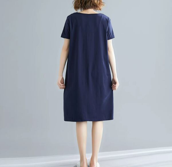 膝丈であり、半袖とVネックのデザインは女性らしさを引き立てます。