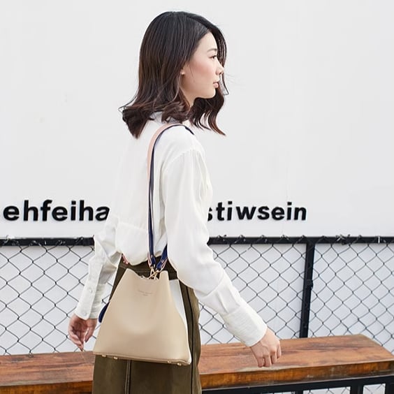 四角いデザインが可愛らしいバケツ型の巾着バッグです。大容量でたっぷり収納できるので、通勤やデイリーのお出かけにぴったりです。斜めがけや肩がけ、手持ちと様々なスタイルでお使いいただけます。軽量で自立するので、荷物が多くても疲れずに持ち運べます。さらに、カジュアルからきれいめまで様々なスタイルに合わせやすいデザインです。