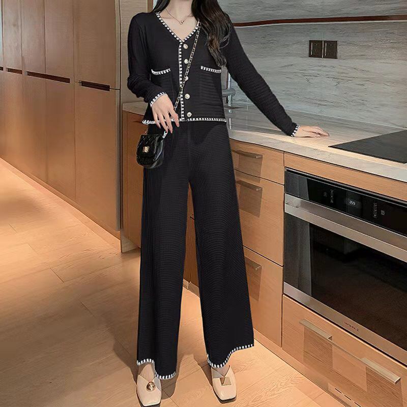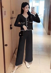 パンツはワイドシルエットでゆったりと着こなせます。中厚手のニット素材で、秋冬にぴったりです!