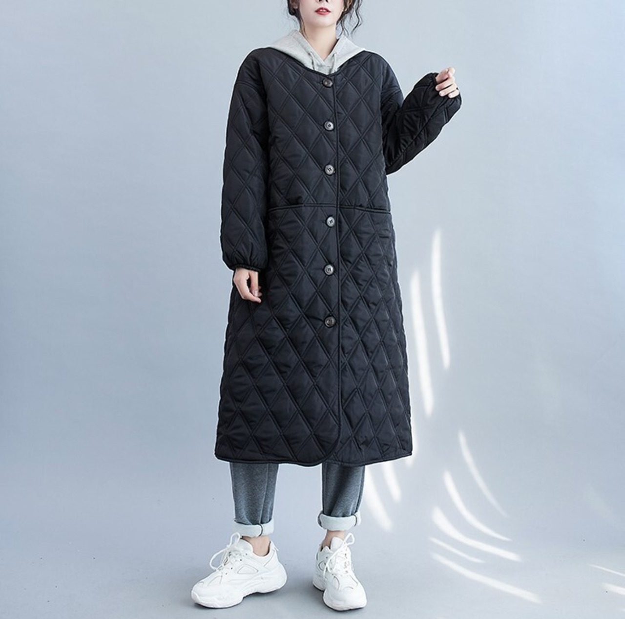レディース コート 上着 キルティングコート ロング 長袖 ノーカラー ストレート ポケット ボタン キルティング 中綿 かわいい 大人可愛い きれいめ シンプル カジュアル 上品 おしゃれ こなれ感 ラフ ガーリー ラブリー キュート 無地 冬 ママ 通勤 学生 学校 通学 デート お出かけ 公園 女子会 休日 ショッピング カフェ 韓国 コーデ 楽ちん 暖かい 防寒 体型カバー 普段使い 着回し モテ トレンド 流行 インスタ映え L XL 2XL 3XL 大きいサイズ ゆったり ブラック