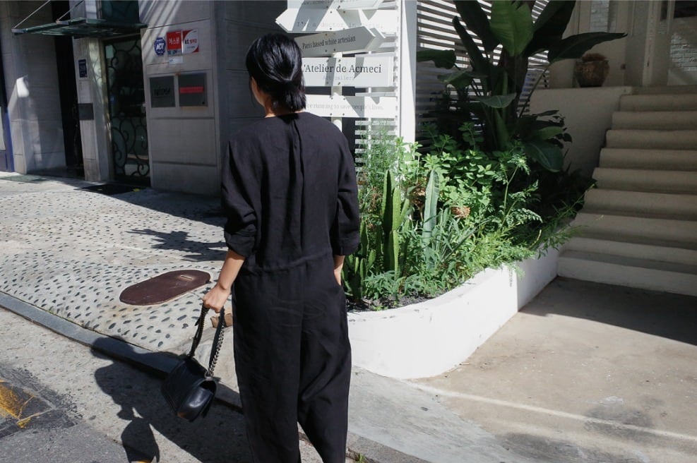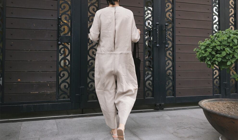 リネン混の上質な素材を使用した、大人可愛いオーバーオールセットアップ。