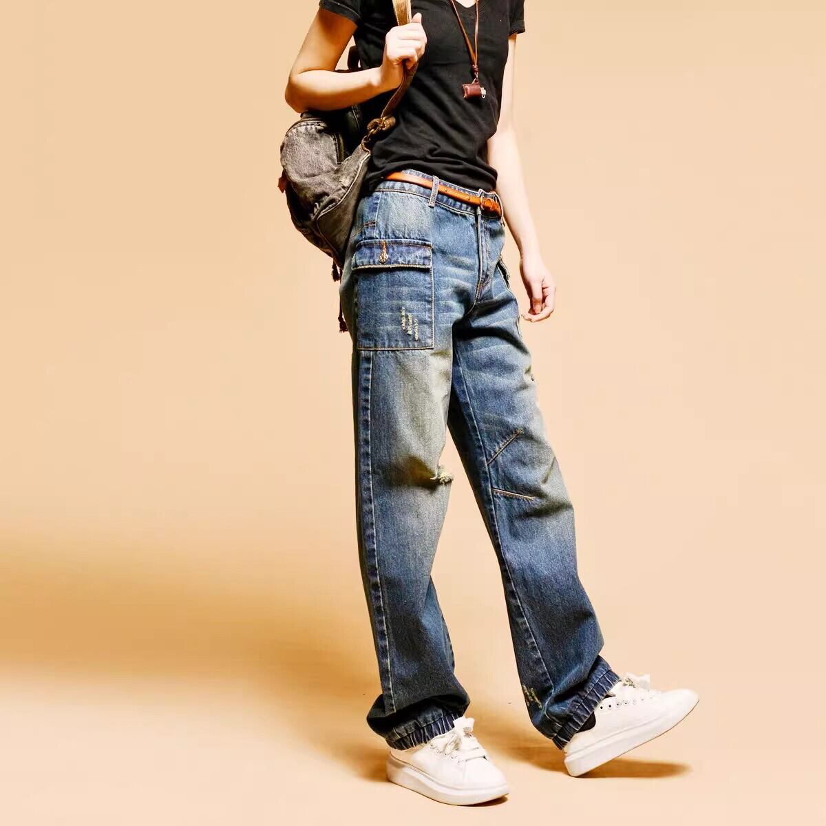 ヴィンテージ感溢れるデニムパンツは、ゆったりしたシルエットにルーズな丈感がこなれ感スタイルを演出してくれます。ダメージ、ウォッシュ加工に加え、サイドのBOXポケットがアクセントに。ジェンダーレスな着こなしがお好みの方におすすめ。アクティブなシーンにしっかりマッチする、ワンランク上のデニムパンツです。