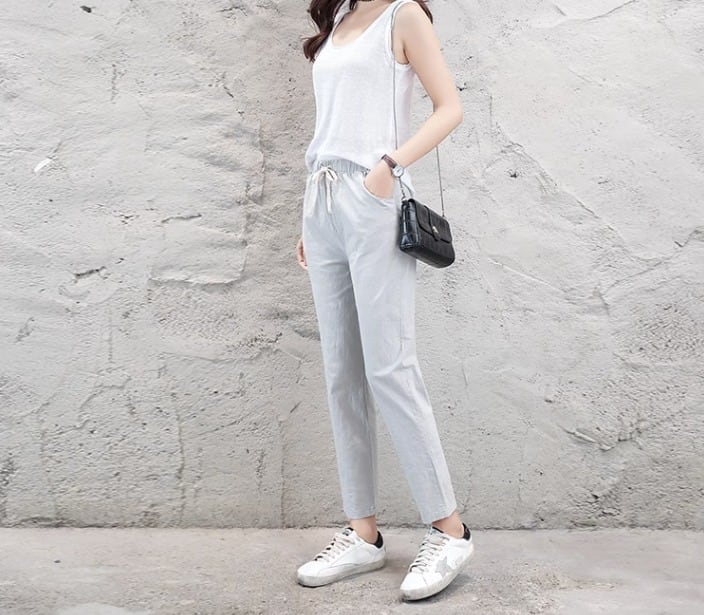 レディース パンツ ボトムス ロングパンツ クロップドパンツ クロップド丈 Iライン ポケット ウエストゴム ドロスト 絞り 薄手 リネン 綿 コットン 麻 リネン混 コットン混 シンプル カジュアル レトロ こなれ感 ラフ メンズライク ボーイッシュ 抜け感 アクティブ 休日感 活発 無地 春 夏 学生 お出かけ アウトドア イベント 公園 休日 フェス スポーツ 楽ちん 普段使い 着回し ロールアップ トレンド 定番 M L XL 2XL ゆとり感 ホワイト ブラック グレー ベージュ 水色 レッド
