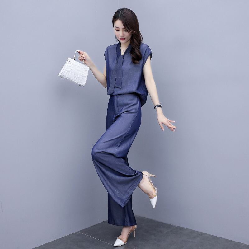 レディース パンツ シャツ セットアップ ツーピースセット パンツスーツ フレア ガウチョパンツ ワイドパンツ アンクル丈 フレンチスリーブ りぼんタイ ワイド フェミニン ブルーデニム 薄手 シンプル カジュアル エレガント モダン かっちり ナチュラル 無地 春 夏 ママ マタニティ オフィス ビジネス 学生 学校 お出かけ パーティー イベント 女子会 休日 バカンス 楽ちん 体型カバー 美脚 脚長 普段使い 着回し モテ 清楚 M L XL 2XL 3XL 大きいサイズ ゆったり ゆる ブルー