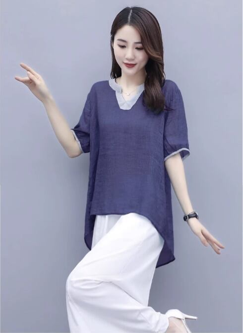 レディース パンツ シャツ プルオーバー 部屋着 セットアップ ツーピースセット ガウチョパンツ ワイドパンツ 半袖 Vネック アシンメトリー ワイド 切り替え オーバーサイズ 裾ワイド 透け感 薄手 リネン コットン シンプル カジュアル クール 抜け感 ナチュラル 無地 春 夏 ママ オフィス ビジネス 学生 学校 お出かけ リゾート 女子会 休日 楽ちん 体型カバー 美脚 脚長 普段使い 着回し M L XL 2XL 3XL 大きいサイズ ビッグ ゆったり ゆる ブルー ネイビー パープル