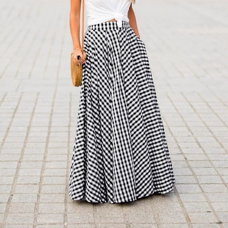 レディース スカート フレアスカート ロングスカート ロング マキシ フレア Aライン ポケット ハイウエスト バイカラー 配色 薄手 柔らか 大人可愛い カジュアル おしゃれ レトロ こなれ感 ラフ ガーリー ルーズ 個性的 存在感 抜け感 キュート ラグジュアリー カレッジ風 アクティブ 休日感 活発 お茶目 ニッチ チェック 春 夏 お出かけ アウトドア リゾート 旅行 海 プール バカンス ショッピング 楽ちん 体型カバー 普段使い 着回し 清楚 トレンド インスタ映え ゆったり ブラック ブルー