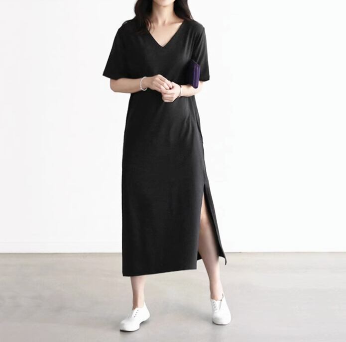 レディース スカート ワンピース ロングスカート ロング 8分丈 半袖 Vネック スリム 細身 スリット サイドスリット ポケット かわいい 大人可愛い きれいめ シンプル 上品 おしゃれ エキゾチック こなれ感 クール モード系 エレガント モダン 主役級 存在感 無地 誕生日 発表会 授業参観 ママ オフィス OL 通勤 学生 デート お出かけ パーティー イベント 旅行 レストラン 女子会 休日 バカンス ショッピング 発表会 コンサート 合コン コンパ カフェ 婚活 楽ちん 美脚 普段使い モテ
