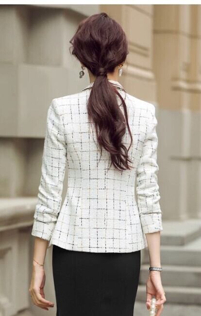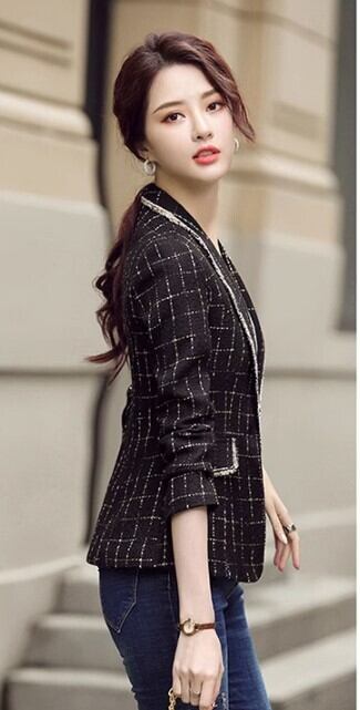 レディース ジャケット 上着 テーラードジャケット 長袖 襟付き 角襟 ポケット 前開き かわいい 大人可愛い きれいめ シンプル 上品 おしゃれ かっこいい 個性的 エレガント モダン 主役級 存在感 フォーマル 都会的 チェック 格子柄 会議 MTG ミーティング プレゼン オフィス ビジネス OL 通勤 学生 学校 デート お出かけ お泊まり イベント 女子会 休日 ホテル ガーデン ショッピング 発表会 合コン カフェ 婚活 韓国 オルチャン コーデ 普段使い 着回し モテ 清楚 インスタ映え