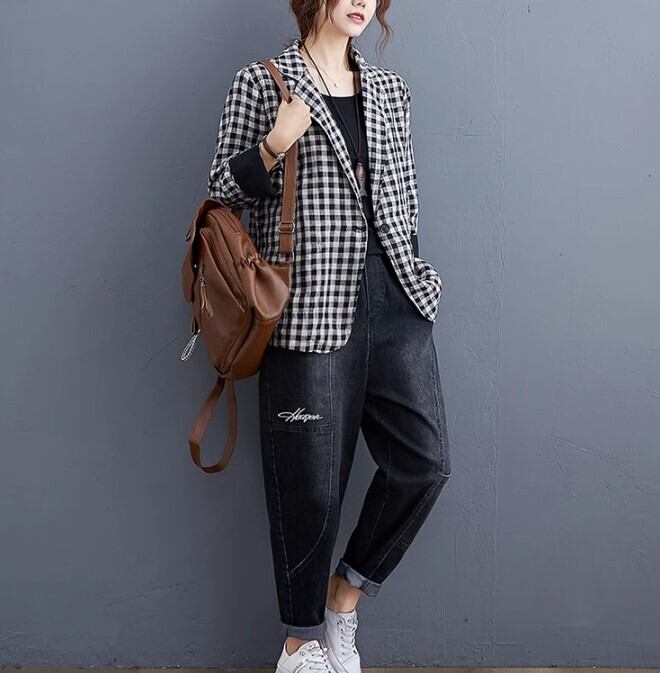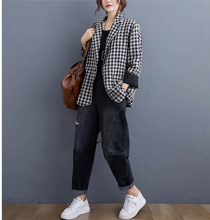 レディース ジャケット 上着 テーラードジャケット 長袖 襟付き 角襟 前開き かわいい 大人可愛い きれいめ シンプル カジュアル おしゃれ かっこいい ルーズ 個性的 クール モード系 モダン 主役級 存在感 都会的 チェック 格子柄 誕生日 シーズンレス OL 通勤 学生 学校 通学 デート お出かけ お泊まり 旅行 公園 女子会 休日 ホテル ガーデン ショッピング 発表会 コンサート ライブ 合コン コンパ カフェ 婚活 韓国 オルチャン コーデ 普段使い 着回し モテ 清楚 定番