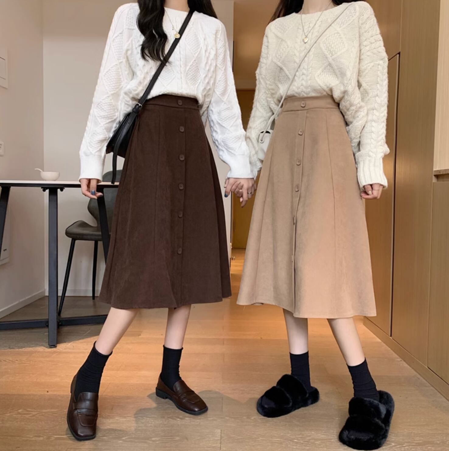 レディース スカート フレアスカート 膝下 ミモレ丈 フレア Aライン ハイウエスト ボタン かわいい 大人可愛い シンプル カジュアル 上品 おしゃれ こなれ感 主役級 存在感 カレッジ風 学生風 ベーシック 無地 春 秋 冬 ロングシーズン ママ 通勤 学生 学校 通学 デート お出かけ イベント 旅行 レストラン 女子会 休日 ホテル ガーデン ショッピング コンサート 合コン コンパ カフェ お買い物 ワンサイズ ブラック ブラウン ベージュ ブルー アプリコット